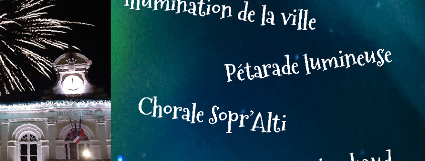 Illumination de la ville – Pétarade lumineuse – Chorale Sopral’ti – Chocolat et vin chaud avec pain d’épices