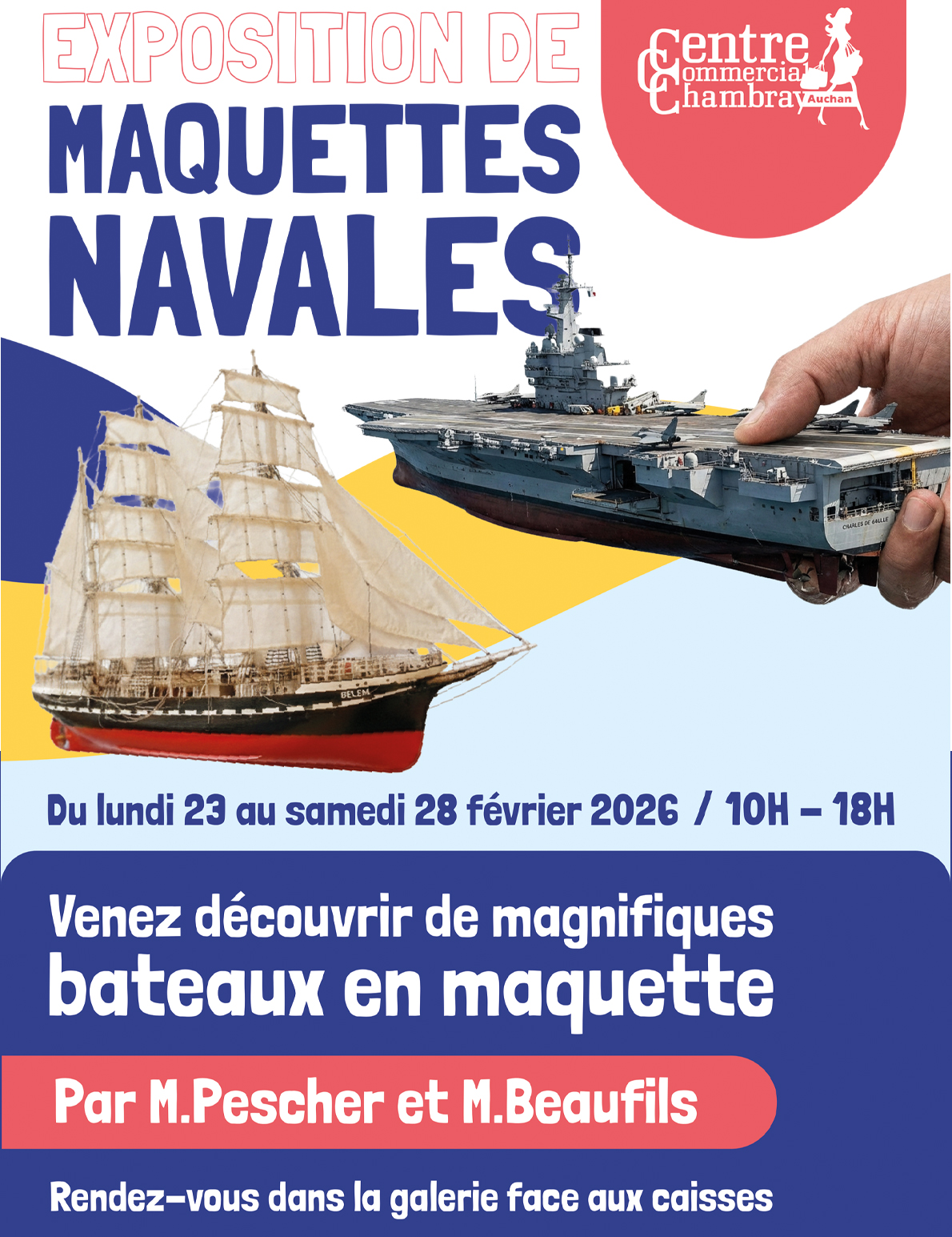 Venez découvrir de magnifiques bateaux en maquette, par M. Pesher et M. Beaufils. Rendez-vous dans la galerie face aux caisses.